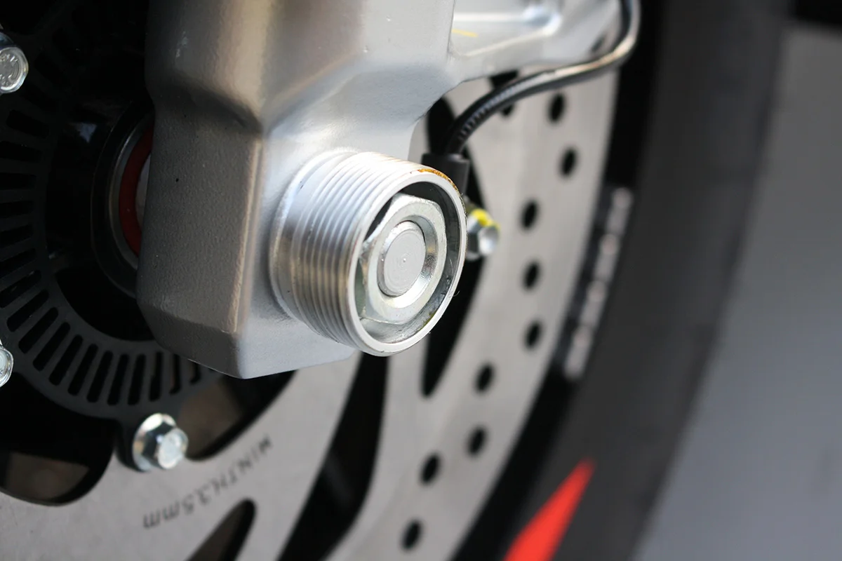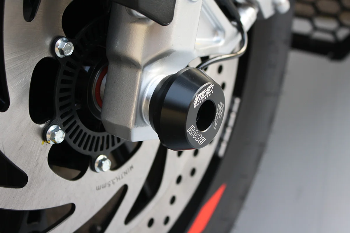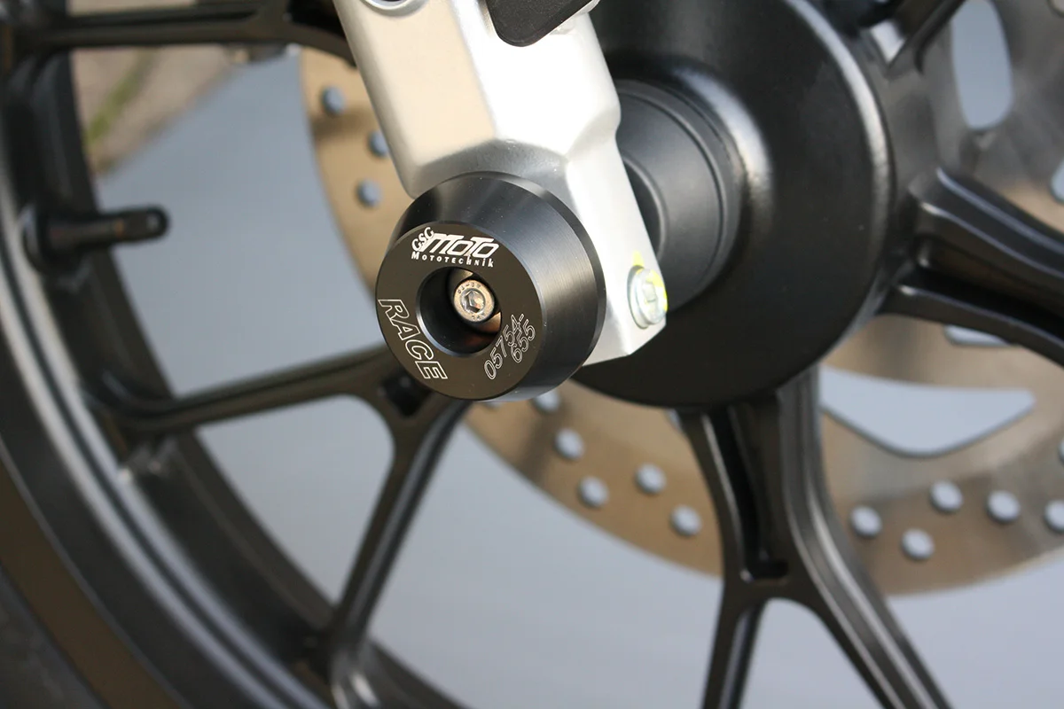 Защитные слайдеры переднего колеса GSG надежно предохраняют переднюю часть мотоцикла от ударов и протирания. При падении мотоцикл ложится на них и контролируемо скользит до остановки. Форма головки просчитана таким образом, чтобы не зацепиться за неровности асфальта, не повредить место крепления и не перевернуть мотоцикл. Качество слайдеров GSG подтверждено 30-летним производством и использованием на дороге и на гоночных треках. Крепёж входит в комплект.