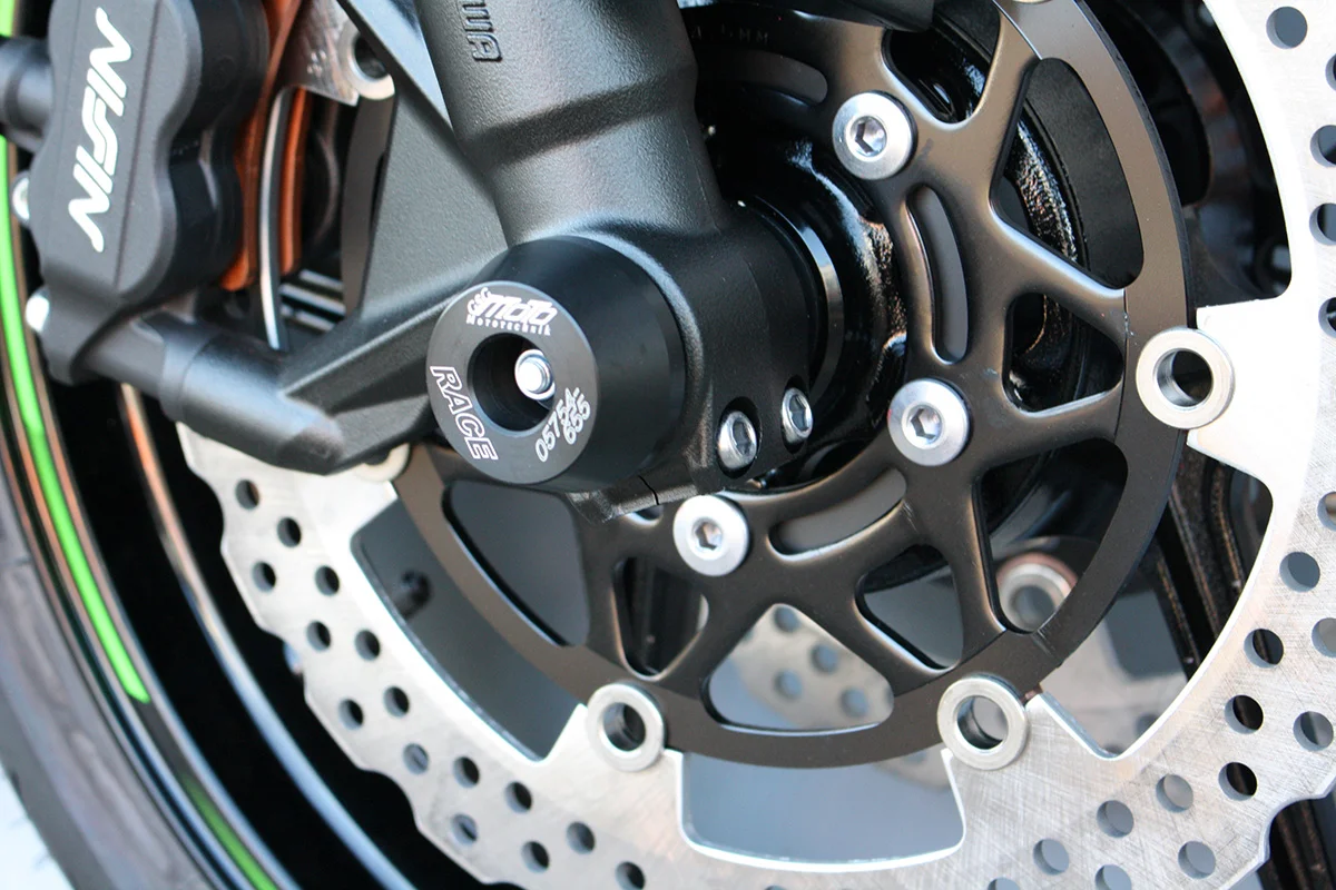 Защитные слайдеры переднего колеса GSG надежно предохраняют переднюю часть мотоцикла от ударов и протирания. При падении мотоцикл ложится на них и контролируемо скользит до остановки. Форма головки просчитана таким образом, чтобы не зацепиться за неровности асфальта, не повредить место крепления и не перевернуть мотоцикл. Качество слайдеров GSG подтверждено 30-летним производством и использованием на дороге и на гоночных треках. Слайдеры устанавливаются на полую ось переднего колеса с помощью шпильки. Крепёж входит в комплект.