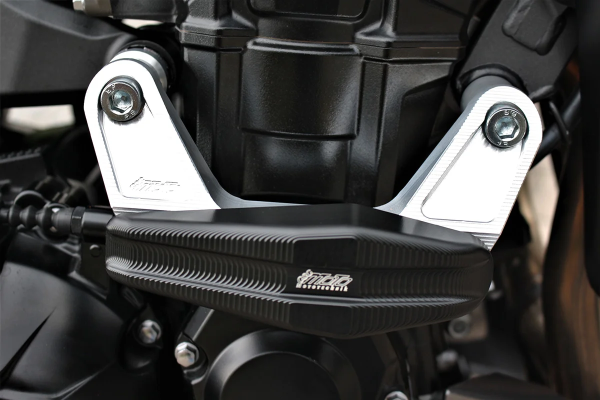 Слайдеры - традиционная деталь для защиты рамы, а также деталей средней и передней частей мотоцикла. В случае падения мотоцикла слайдеры из очень прочного пластика предохраняют от проламывания, протирания и других воздействий. Их качество подтверждено 30-летним производством и использованием на дороге и на гоночных треках. Слайдер крепится к мотоциклу через систему кронштейнов (входят в комплект).