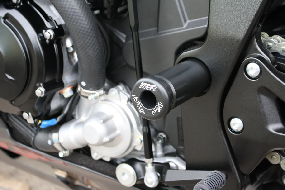 Защитные слайдеры оси маятника GSG надежно предохраняют среднюю часть мотоцикла от ударов и протирания. При падении мотоцикл ложится на них и контролируемо скользит до остановки. Форма головки просчитана таким образом, чтобы не зацепиться за неровности асфальта, не повредить место крепления и не перевернуть мотоцикл. Качество слайдеров GSG подтверждено 30-летним производством и использованием на дороге и на гоночных треках. Слайдеры устанавливаются в полую ось маятника с помощью шпильки. Крепёж входит в комплект.