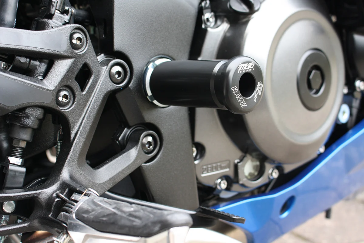 Защитные слайдеры оси маятника GSG надежно предохраняют среднюю часть мотоцикла от ударов и протирания. При падении мотоцикл ложится на них и контролируемо скользит до остановки. Форма головки просчитана таким образом, чтобы не зацепиться за неровности асфальта, не повредить место крепления и не перевернуть мотоцикл. Качество слайдеров GSG подтверждено 30-летним производством и использованием на дороге и на гоночных треках. Слайдеры устанавливаются в полую ось маятника с помощью шпильки. Крепёж входит в комплект.