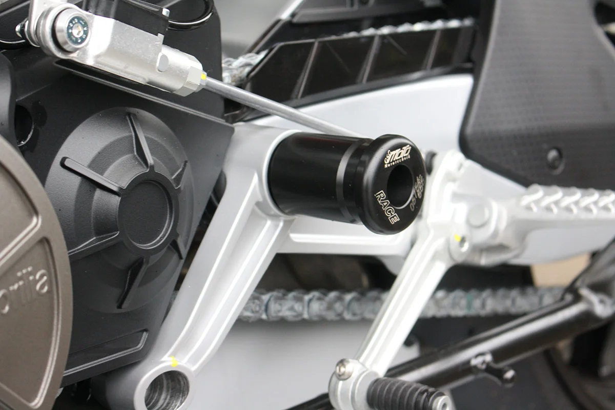 Защитные слайдеры оси маятника GSG надежно предохраняют среднюю часть мотоцикла от ударов и протирания. При падении мотоцикл ложится на них и контролируемо скользит до остановки. Форма головки просчитана таким образом, чтобы не зацепиться за неровности асфальта, не повредить место крепления и не перевернуть мотоцикл. Качество слайдеров GSG подтверждено 30-летним производством и использованием на дороге и на гоночных треках. Слайдеры устанавливаются в полую ось маятника с помощью шпильки. Крепёж входит в комплект.