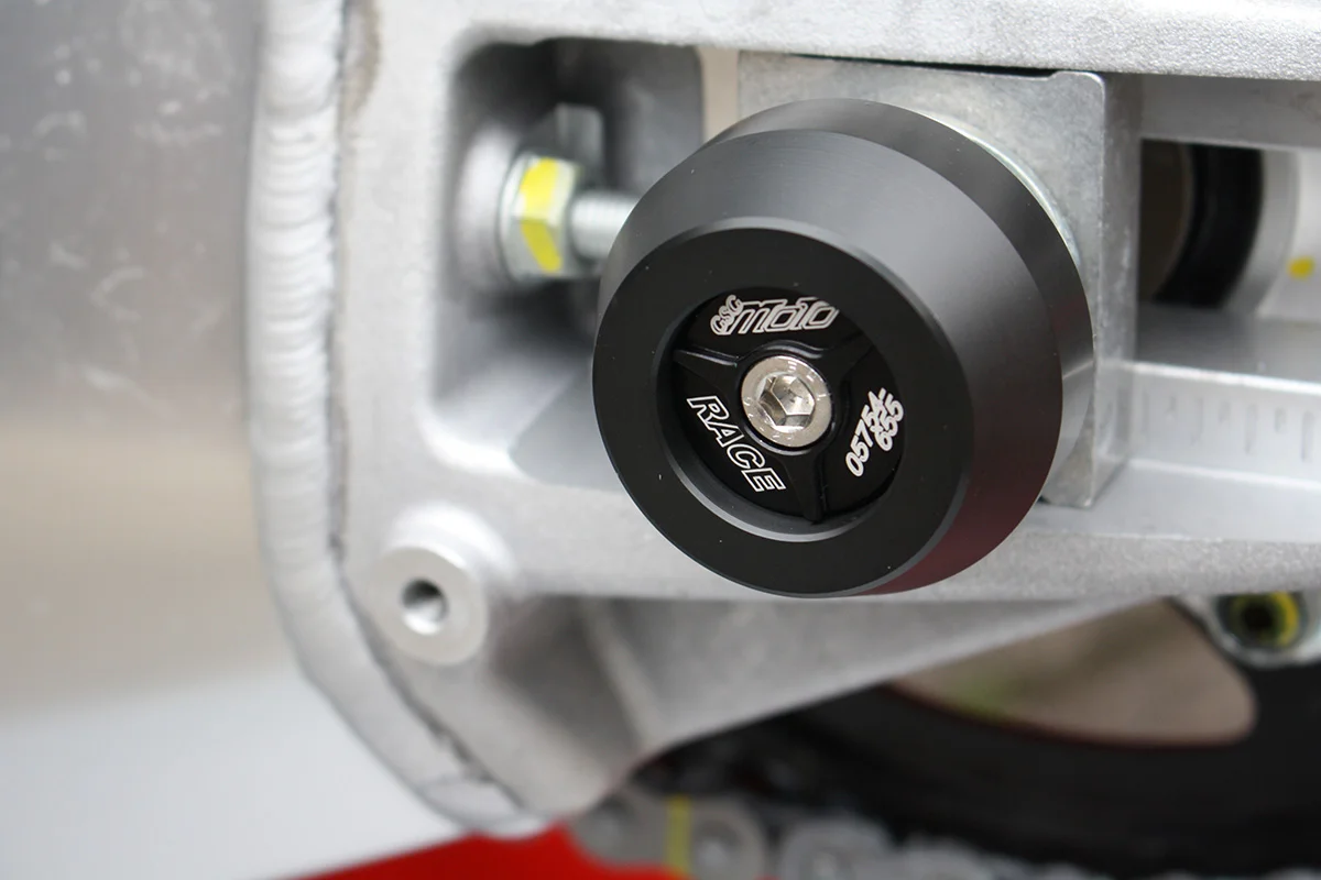 Для более эффективной защиты при падениях рекомендуем использовать слайдеры оси переднего колеса в сочетании с защитой рамы, двигателя и маятника.