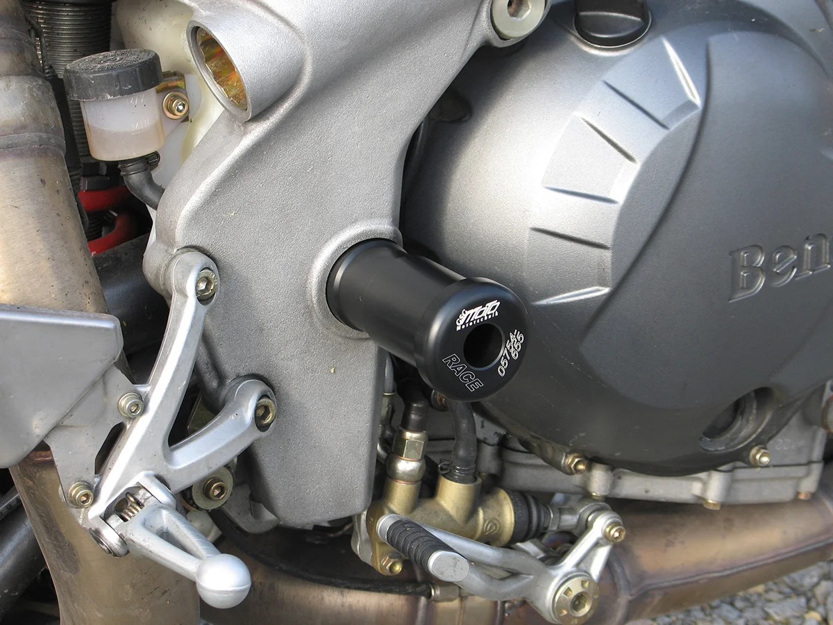 Защитные слайдеры оси маятника GSG надежно предохраняют среднюю часть мотоцикла от ударов и протирания. При падении мотоцикл ложится на них и контролируемо скользит до остановки. Форма головки просчитана таким образом, чтобы не зацепиться за неровности асфальта, не повредить место крепления и не перевернуть мотоцикл. Качество слайдеров GSG подтверждено 30-летним производством и использованием на дороге и на гоночных треках. Слайдеры устанавливаются в полую ось маятника с помощью шпильки. Крепёж входит в комплект.
