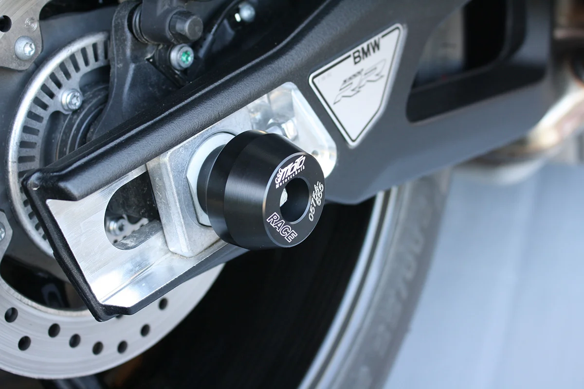 Защитные слайдеры заднего колеса GSG надежно защищают заднюю часть мотоцикла от ударов и протирания. При падении мотоцикл ложится на них и контролируемо скользит до остановки. Форма головки просчитана таким образом, чтобы не зацепиться за неровности асфальта, не повредить место крепления и не перевернуть мотоцикл. Качество слайдеров GSG подтверждено 30-летним производством и использованием на дороге и на гоночных треках. Слайдеры 30-45-397 устанавливаются в ось заднего колеса с помощью шпильки. Крепёж входит в комплект.