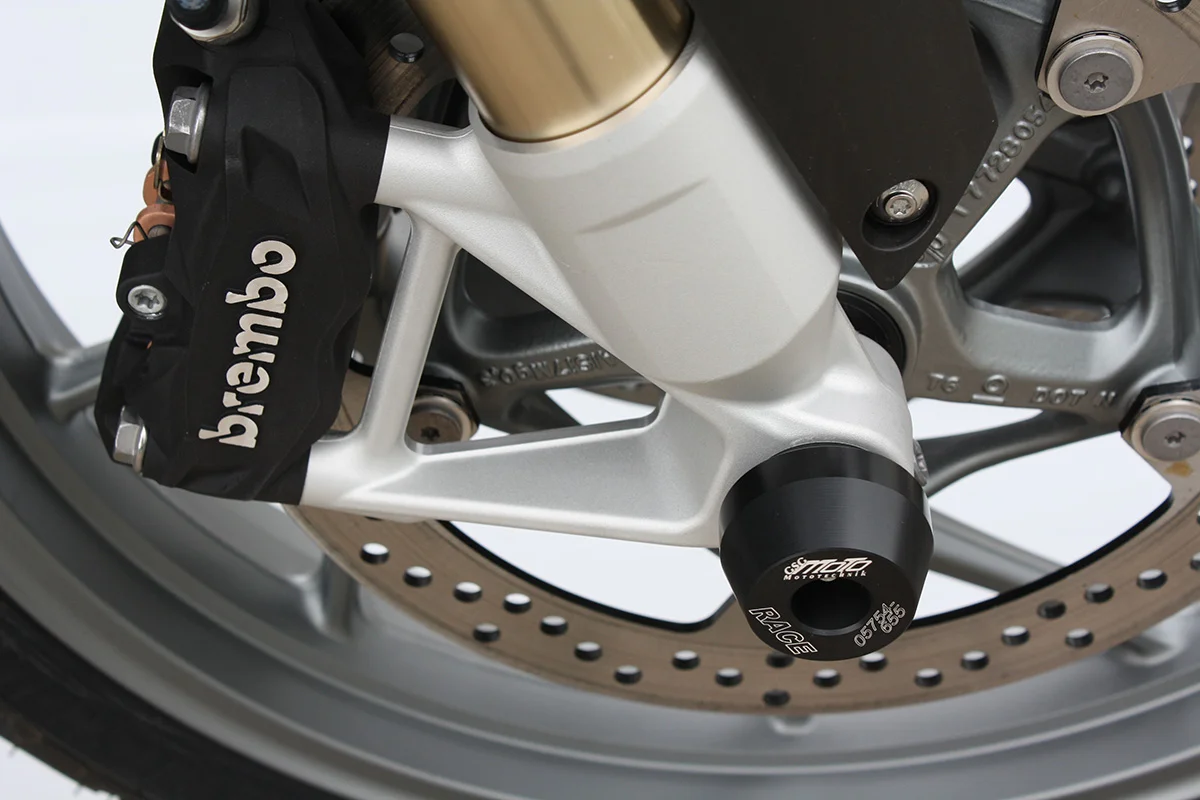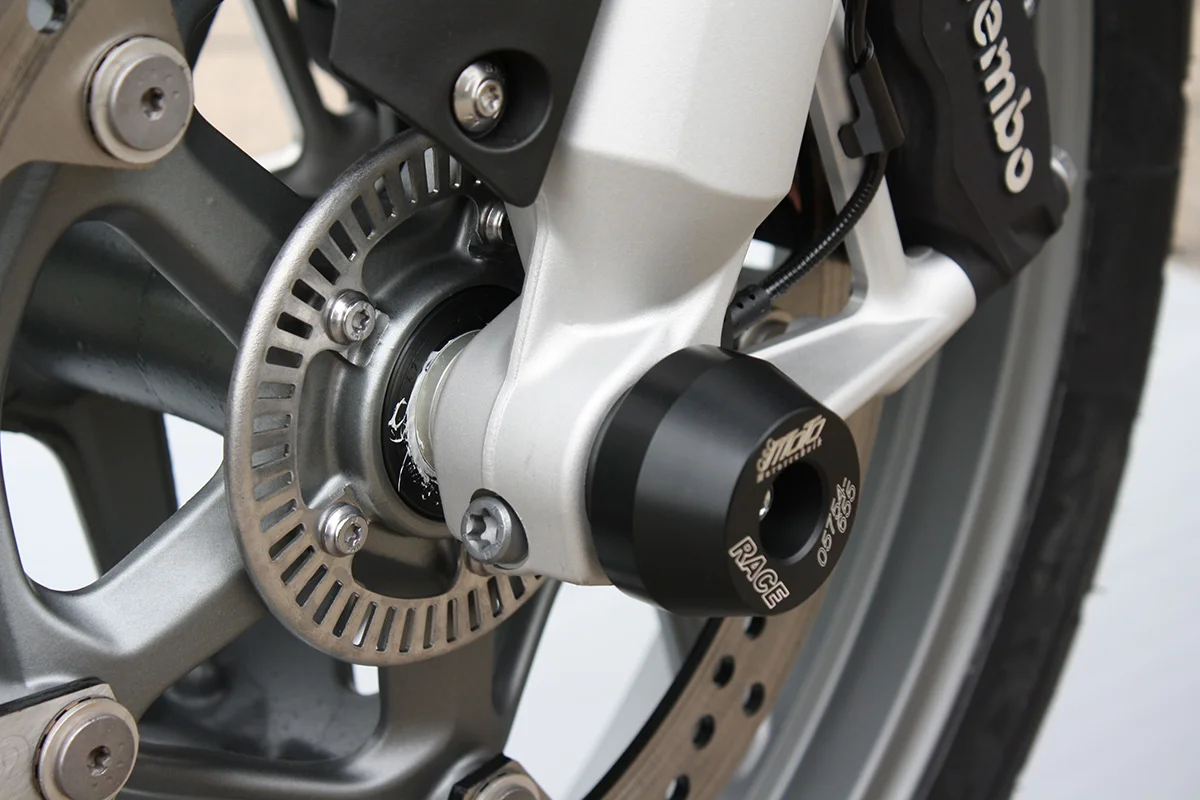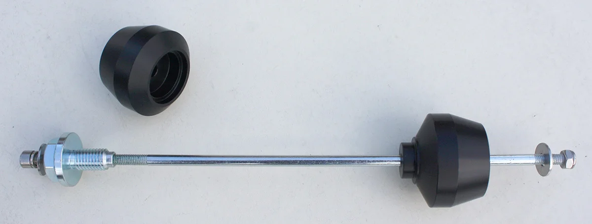 Защитные слайдеры переднего колеса GSG надежно защищают переднюю часть мотоцикла от ударов и протирания. При падении мотоцикл ложится на них и контролируемо скользит до остановки. Форма головки просчитана таким образом, чтобы не зацепиться за неровности асфальта, не повредить место крепления и не перевернуть мотоцикл. Качество слайдеров GSG подтверждено 30-летним производством и использованием на дороге и на гоночных треках. Слайдеры 33-41-248 устанавливаются на полую ось переднего колеса с помощью шпильки. Крепёж входит в комплект.