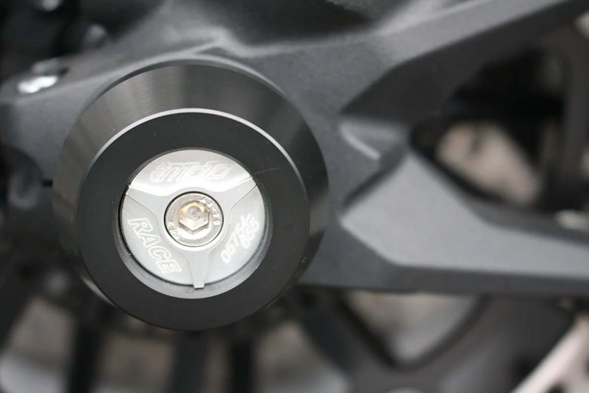 Защитные слайдеры переднего колеса GSG надежно защищают переднюю часть мотоцикла от ударов и протирания. При падении мотоцикл ложится на них и контролируемо скользит до остановки. Форма головки просчитана таким образом, чтобы не зацепиться за неровности асфальта, не повредить место крепления и не перевернуть мотоцикл. Качество слайдеров GSG подтверждено 30-летним производством и использованием на дороге и на гоночных треках. Слайдеры устанавливаются на ось переднего колеса с помощью резиновых втулок. Крепёж входит в комплект.