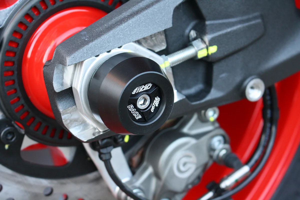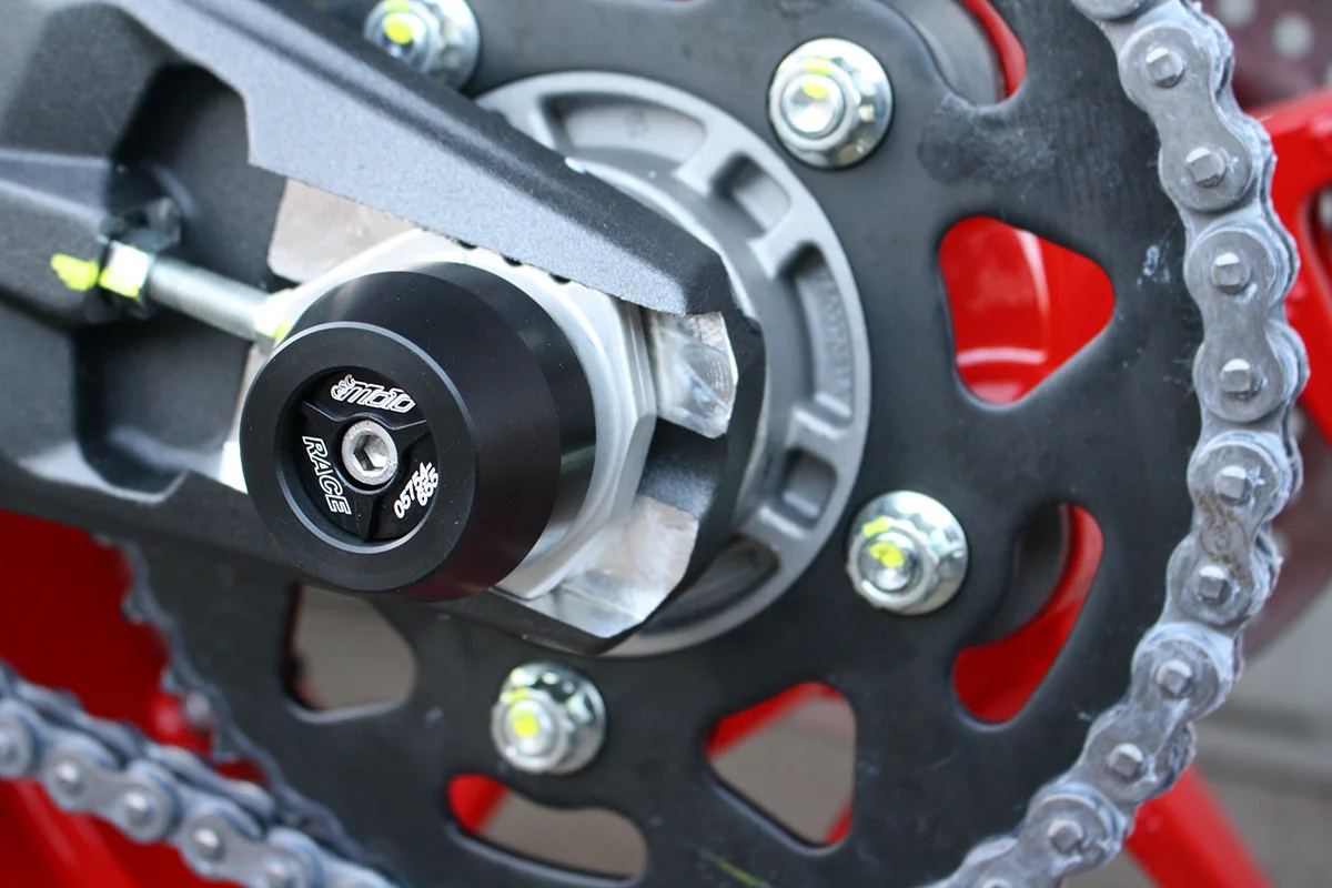 Защитные слайдеры заднего колеса GSG надежно защищают заднюю часть мотоцикла от ударов и протирания. При падении мотоцикл ложится на них и контролируемо скользит до остановки. Форма головки просчитана таким образом, чтобы не зацепиться за неровности асфальта, не повредить место крепления и не перевернуть мотоцикл. Качество слайдеров GSG подтверждено 30-летним производством и использованием на дороге и на гоночных треках. Крепёж входит в комплект.