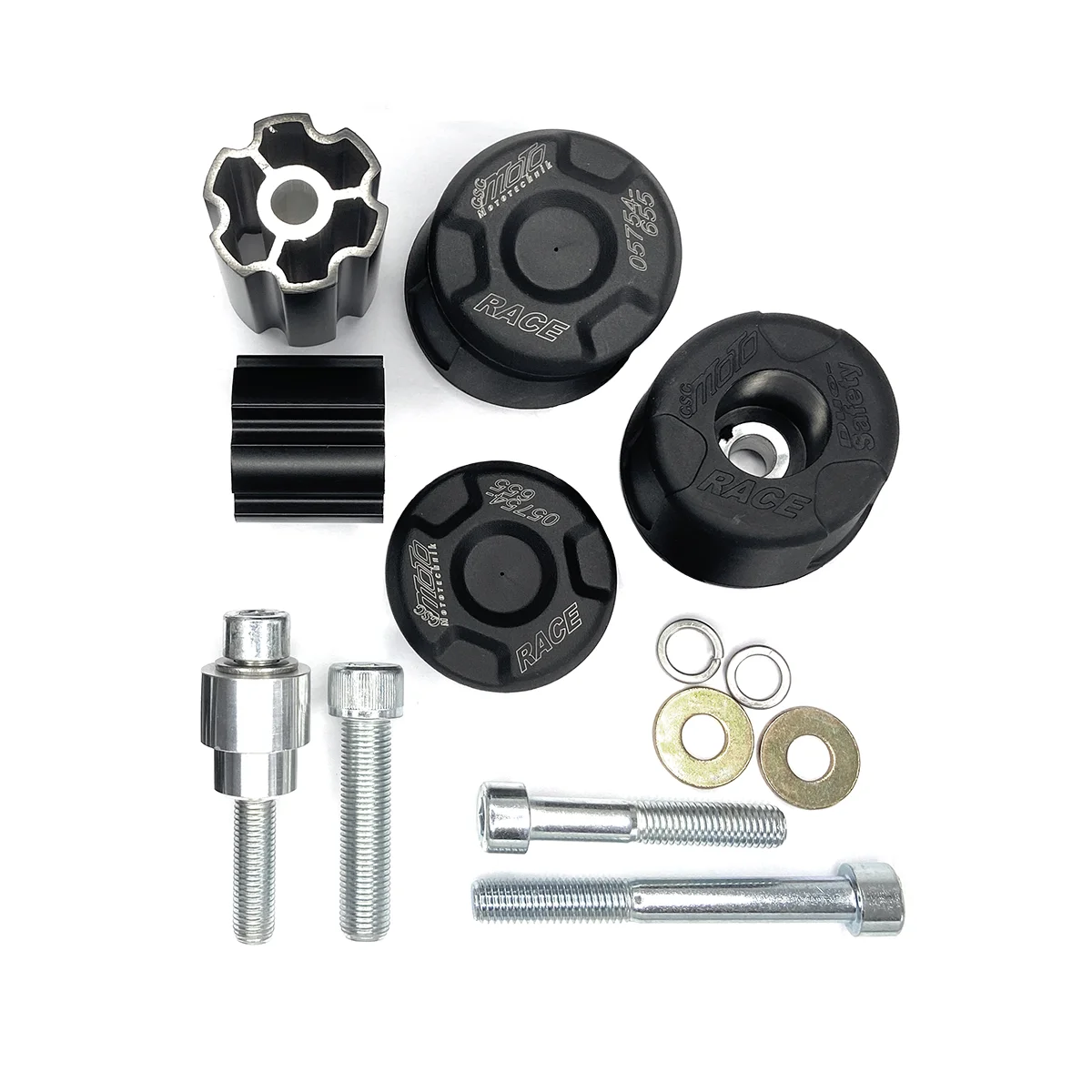 Цилиндрические слайдеры - традиционная деталь для защиты рамы, а также деталей средней и передней частей мотоцикла. В случае падения мотоцикла слайдеры из очень прочного пластика предохраняют от проламывания, протирания и других воздействий. Их качество подтверждено 30-летним производством и использованием на дороге и на гоночных треках. При некоторых видах повреждений цилиндрическую головку можно заменить и продолжить использование слайдера. Слайдер устанавливается на мощный болт и крепится к мотоциклу через систему кронштейнов (входят в комплект).