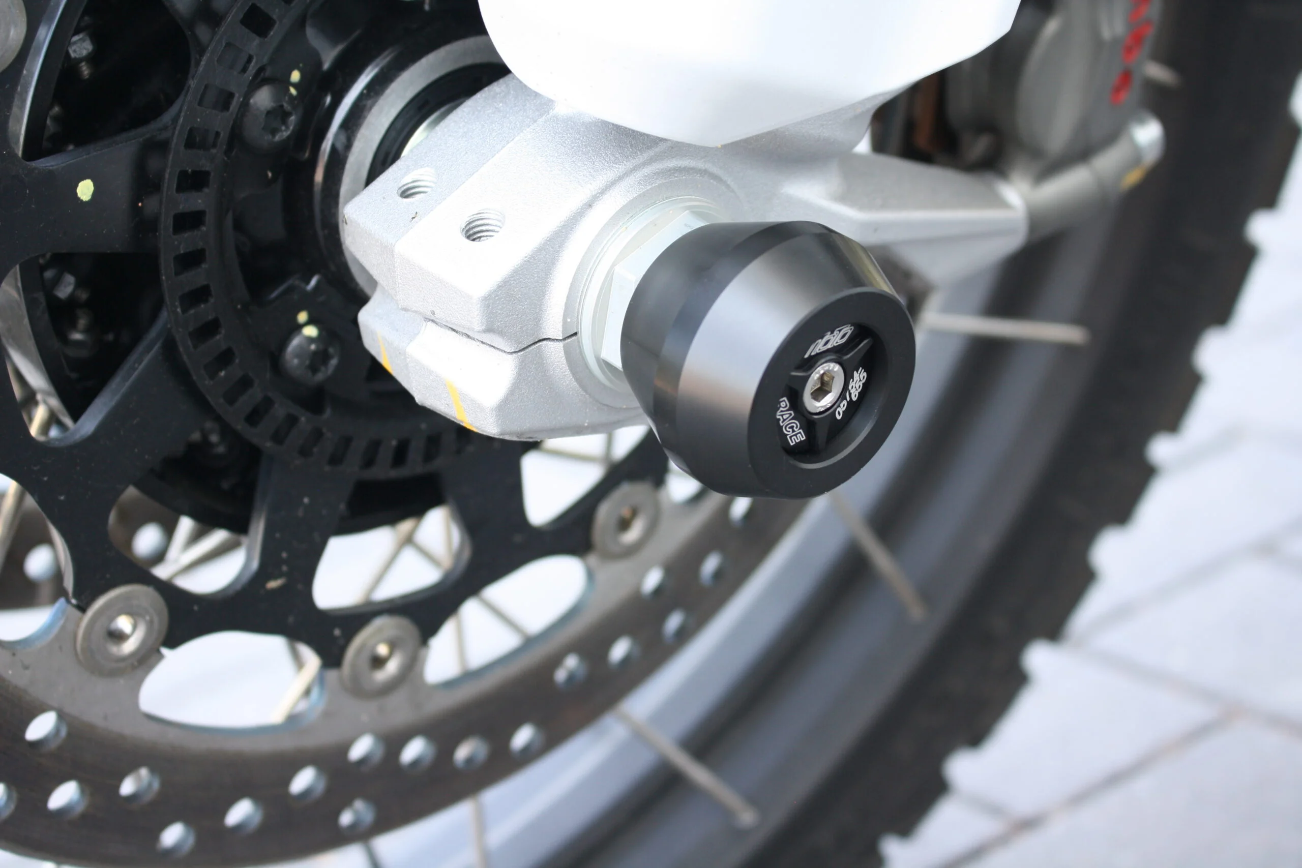 Слайдеры оси переднего колеса на втулках GSG 41E-45E-D47 защищают переднюю часть мотоцикла Ducati при падениях. Они предотвращают повреждения оси, гайки, нижней части вилки, тормоза и прилегающих деталей. Установка простая, не требует специнструмента.