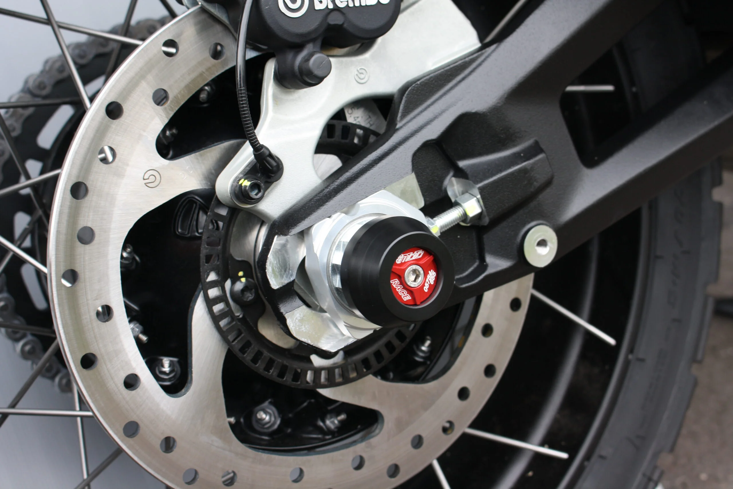 Защитные слайдеры заднего колеса GSG надежно защищают заднюю часть мотоцикла от ударов и протирания. При падении мотоцикл ложится на них и контролируемо скользит до остановки. Форма головки просчитана таким образом, чтобы не зацепиться за неровности асфальта, не повредить место крепления и не перевернуть мотоцикл. Качество слайдеров GSG подтверждено 30-летним производством и использованием на дороге и на гоночных треках. Крепёж входит в комплект.