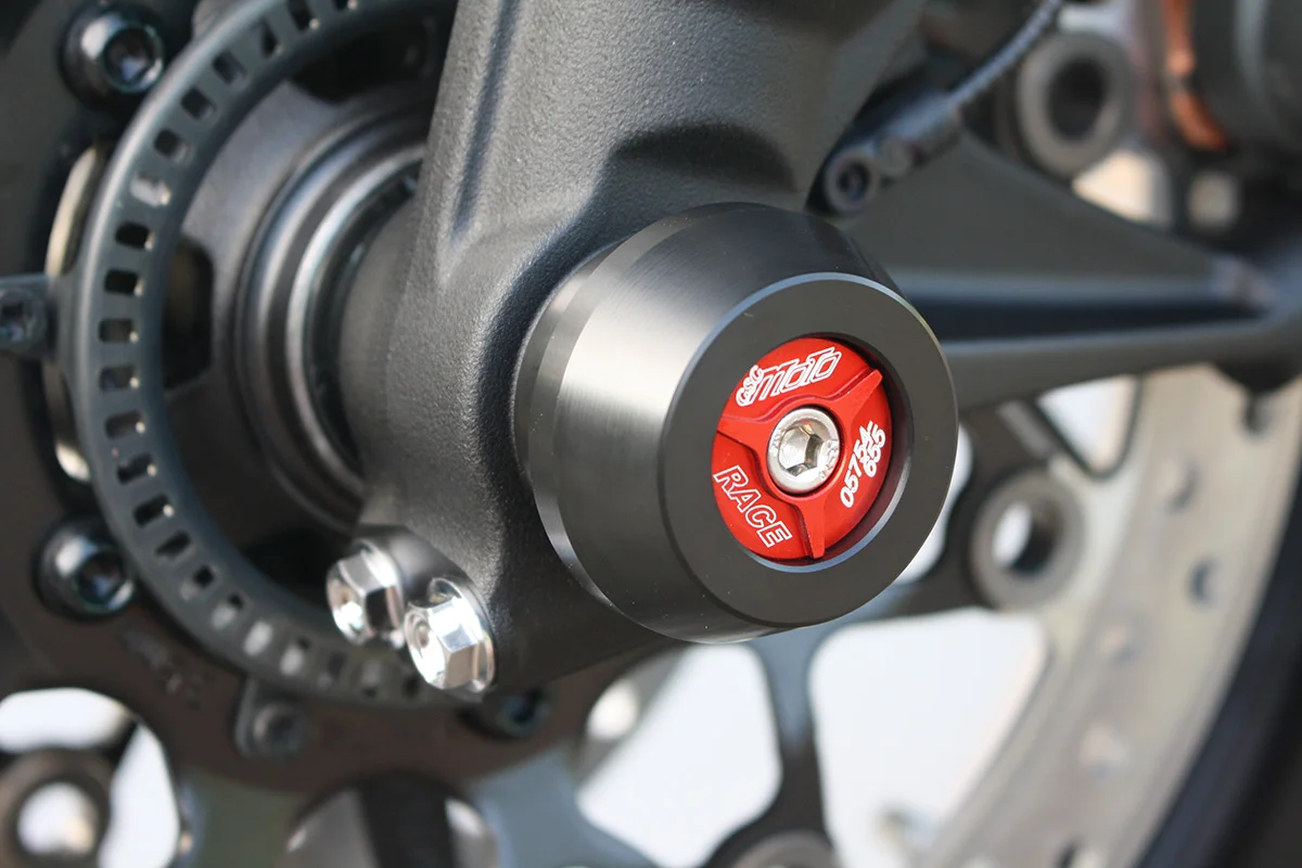 Защитные слайдеры переднего колеса GSG надежно предохраняют переднюю часть мотоцикла от ударов и протирания. При падении мотоцикл ложится на них и контролируемо скользит до остановки. Форма головки просчитана таким образом, чтобы не зацепиться за неровности асфальта, не повредить место крепления и не перевернуть мотоцикл. Качество слайдеров GSG подтверждено 30-летним производством и использованием на дороге и на гоночных треках. Слайдеры устанавливаются на ось переднего колеса с помощью резиновых втулок. Крепёж входит в комплект.