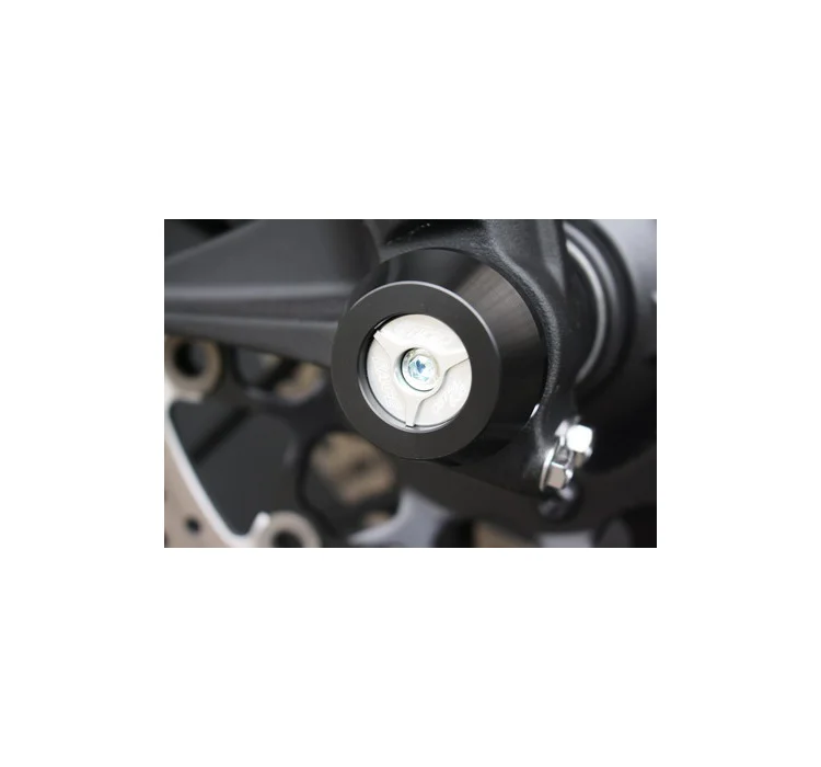 Защитные слайдеры переднего колеса GSG надежно предохраняют переднюю часть мотоцикла от ударов и протирания. При падении мотоцикл ложится на них и контролируемо скользит до остановки. Форма головки просчитана таким образом, чтобы не зацепиться за неровности асфальта, не повредить место крепления и не перевернуть мотоцикл. Качество слайдеров GSG подтверждено 30-летним производством и использованием на дороге и на гоночных треках. Слайдеры устанавливаются на ось переднего колеса с помощью резиновых втулок. Крепёж входит в комплект.