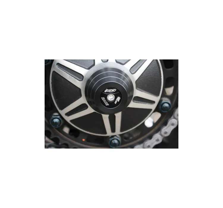 Защитные слайдеры заднего колеса GSG надежно предохраняют заднюю часть мотоцикла от ударов и протирания. При падении мотоцикл ложится на них и контролируемо скользит до остановки. Форма головки просчитана таким образом, чтобы не зацепиться за неровности асфальта, не повредить место крепления и не перевернуть мотоцикл. Качество слайдеров GSG подтверждено 30-летним производством и использованием на дороге и на гоночных треках. Слайдеры устанавливаются на ось заднего колеса с помощью резиновых втулок. Крепёж входит в комплект.