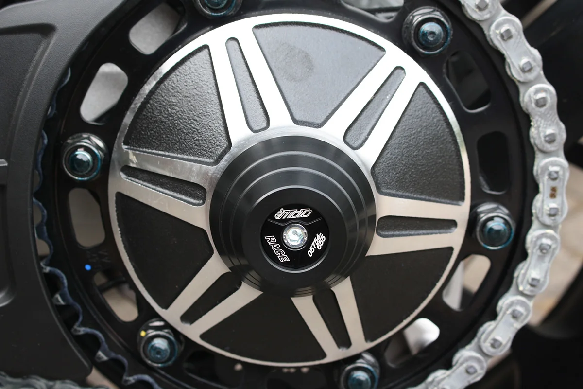 Для более эффективной защиты при падениях рекомендуем использовать слайдеры оси заднего колеса в сочетании с защитой рамы, двигателя и переднего колеса.