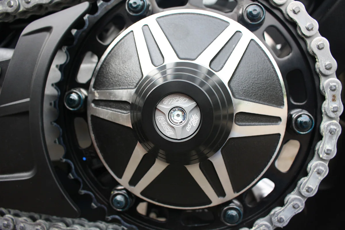 Для более эффективной защиты при падениях рекомендуем использовать слайдеры оси заднего колеса в сочетании с защитой рамы, двигателя и переднего колеса.