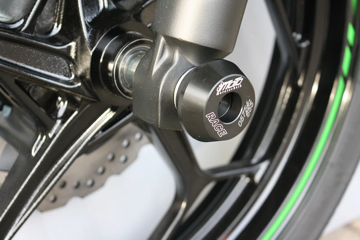 Защитные слайдеры переднего колеса GSG надежно предохраняют переднюю часть мотоцикла от ударов и протирания. При падении мотоцикл ложится на них и контролируемо скользит до остановки. Форма головки просчитана таким образом, чтобы не зацепиться за неровности асфальта, не повредить место крепления и не перевернуть мотоцикл. Качество слайдеров GSG подтверждено 30-летним производством и использованием на дороге и на гоночных треках. Слайдеры устанавливаются на полую ось переднего колеса с помощью шпильки. Крепёж входит в комплект.