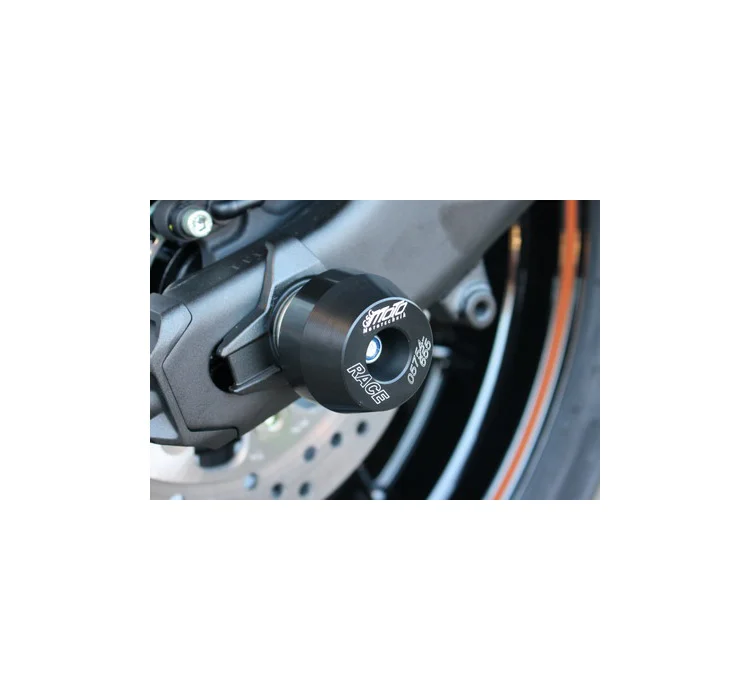 Защитные слайдеры заднего колеса GSG надежно предохраняют заднюю часть мотоцикла от ударов и протирания. При падении мотоцикл ложится на них и контролируемо скользит до остановки. Форма головки просчитана таким образом, чтобы не зацепиться за неровности асфальта, не повредить место крепления и не перевернуть мотоцикл. Качество слайдеров GSG подтверждено 30-летним производством и использованием на дороге и на гоночных треках. Слайдеры устанавливаются в ось заднего колеса с помощью шпильки. Крепёж входит в комплект.