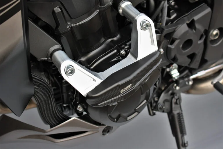 - Кронштейны крепятся в усиленной зоне мотоцикла и дополнительно поглощают удары
