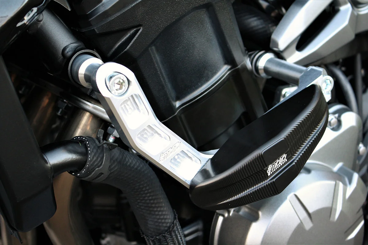 Слайдеры - традиционная деталь для защиты рамы, а также деталей средней и передней частей мотоцикла. В случае падения мотоцикла слайдеры из очень прочного пластика предохраняют от проламывания, протирания и других воздействий. Их качество подтверждено 30-летним производством и использованием на дороге и на гоночных треках. Слайдер крепится к мотоциклу через систему кронштейнов (входят в комплект).
