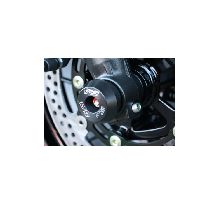 Слайдеры оси переднего колеса на шпильке GSG 29-29-A-295 защищают переднюю часть мотоцикла Kawasaki при падениях. Они предотвращают повреждения оси, гайки, нижней части вилки, тормоза и прилегающих деталей. Установка простая, не требует специнструмента