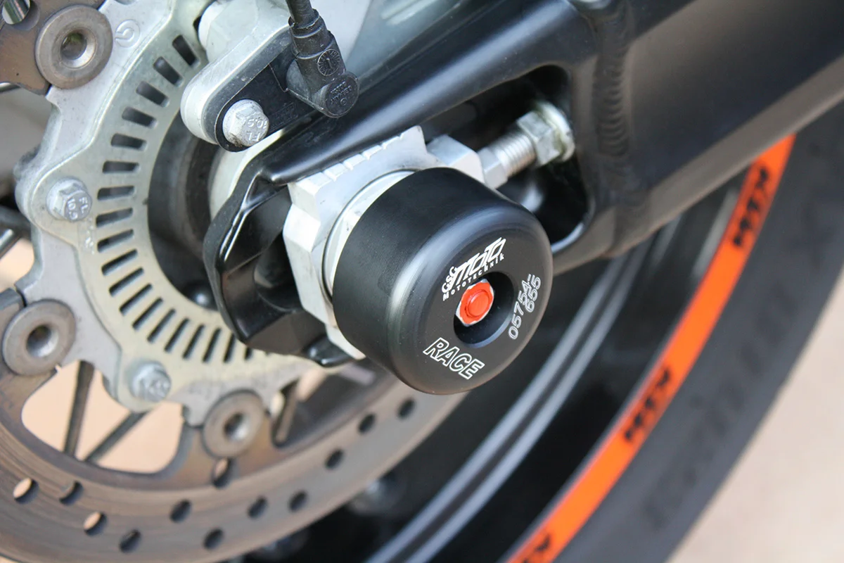 Защитные слайдеры заднего колеса GSG надежно предохраняют заднюю часть мотоцикла от ударов и протирания. При падении мотоцикл ложится на них и контролируемо скользит до остановки. Форма головки просчитана таким образом, чтобы не зацепиться за неровности асфальта, не повредить место крепления и не перевернуть мотоцикл. Качество слайдеров GSG подтверждено 30-летним производством и использованием на дороге и на гоночных треках. Слайдеры устанавливаются в ось заднего колеса с помощью шпильки. Крепёж входит в комплект.