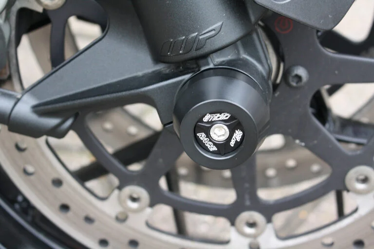 Для более эффективной защиты при падениях рекомендуем использовать слайдеры оси переднего колеса в сочетании с защитой рамы, двигателя и маятника.