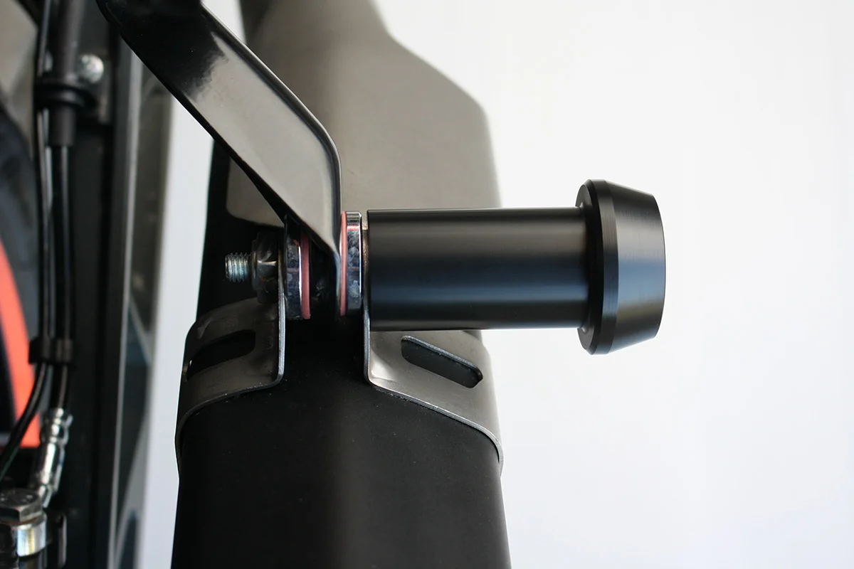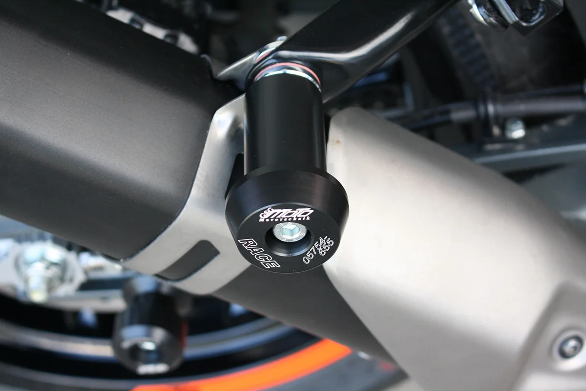 Для более эффективной защиты при падениях рекомендуем использовать слайдер глушителя в сочетании с защитой рамы, двигателя и переднего колеса.