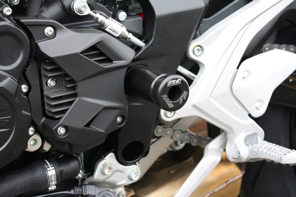 Защитные слайдеры оси маятника GSG надежно предохраняют среднюю часть мотоцикла от ударов и протирания. При падении мотоцикл ложится на них и контролируемо скользит до остановки. Форма головки просчитана таким образом, чтобы не зацепиться за неровности асфальта, не повредить место крепления и не перевернуть мотоцикл. Качество слайдеров GSG подтверждено 30-летним производством и использованием на дороге и на гоночных треках. Слайдеры устанавливаются в полую ось маятника с помощью шпильки. Крепёж входит в комплект.