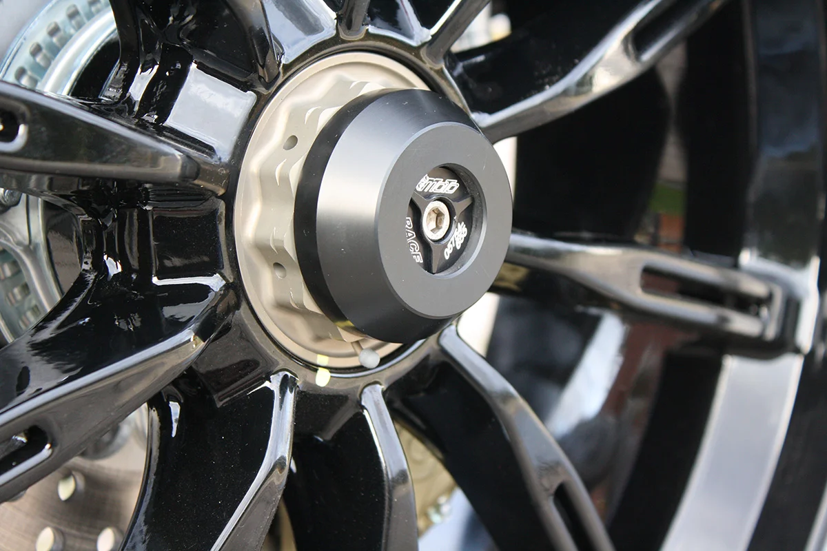 Защитные слайдеры заднего колеса GSG надежно предохраняют заднюю часть мотоцикла от ударов и протирания. При падении мотоцикл ложится на них и контролируемо скользит до остановки. Форма головки просчитана таким образом, чтобы не зацепиться за неровности асфальта, не повредить место крепления и не перевернуть мотоцикл. Качество слайдеров GSG подтверждено 30-летним производством и использованием на дороге и на гоночных треках. Слайдеры устанавливаются на ось заднего колеса с помощью резиновых втулок. Крепёж входит в комплект.