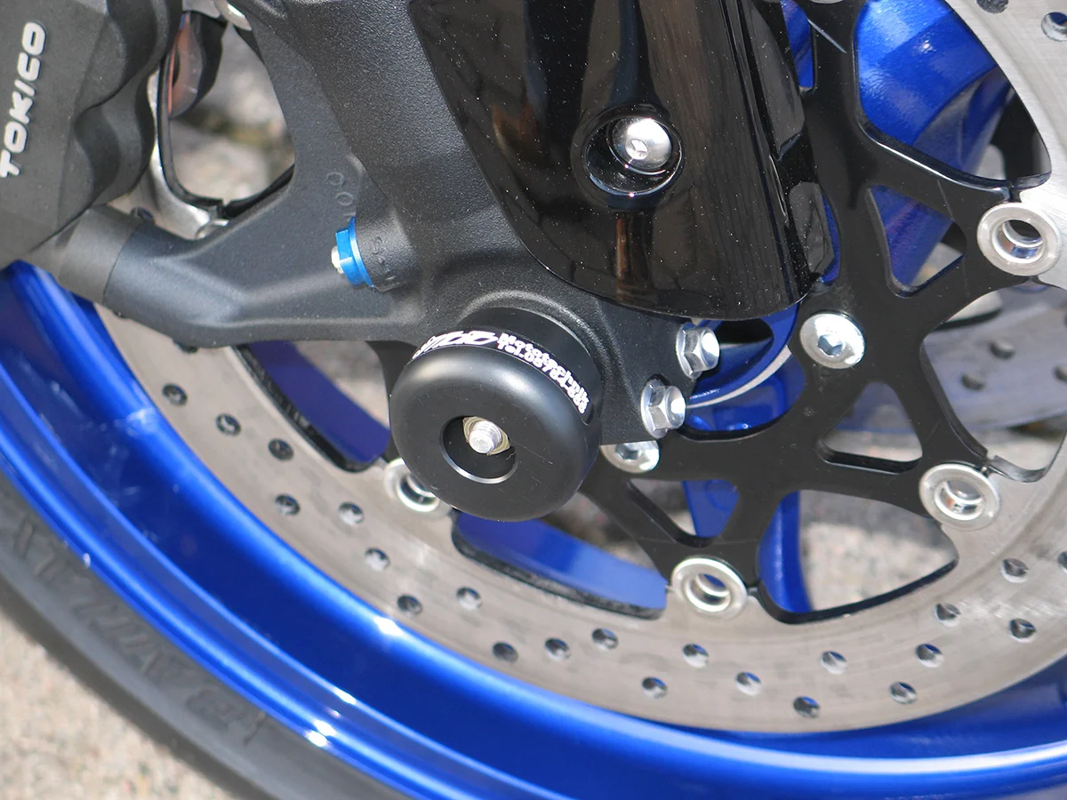 Слайдеры оси переднего колеса на шпильке GSG 37-30-290 защищают переднюю часть мотоцикла Suzuki при падениях. Они предотвращают повреждения оси, гайки, нижней части вилки, тормоза и прилегающих деталей. Установка простая, не требует специнструмента