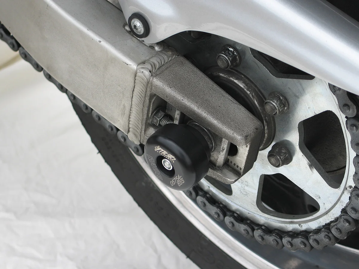 Слайдеры оси заднего колеса на шпильке GSG защищают заднюю часть мотоцикла Suzuki при падениях. Они предотвращают повреждения оси, гайки, маятника, тормоза и прилегающих деталей. Установка простая, не требует специнструмента