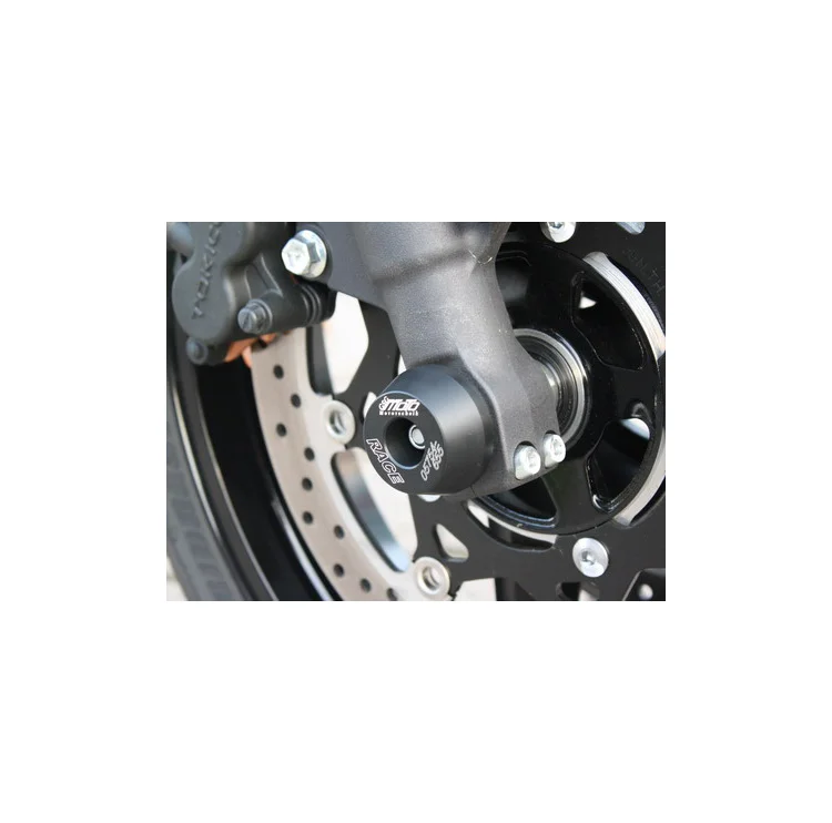 Защитные слайдеры переднего колеса GSG надежно предохраняют переднюю часть мотоцикла от ударов и протирания. При падении мотоцикл ложится на них и контролируемо скользит до остановки. Форма головки просчитана таким образом, чтобы не зацепиться за неровности асфальта, не повредить место крепления и не перевернуть мотоцикл. Качество слайдеров GSG подтверждено 30-летним производством и использованием на дороге и на гоночных треках. Слайдеры устанавливаются на полую ось переднего колеса с помощью шпильки. Крепёж входит в комплект.
