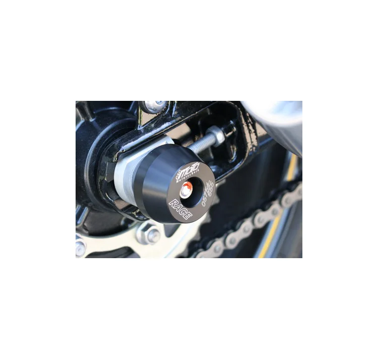 Защитные слайдеры заднего колеса GSG надежно предохраняют заднюю часть мотоцикла от ударов и протирания. При падении мотоцикл ложится на них и контролируемо скользит до остановки. Форма головки просчитана таким образом, чтобы не зацепиться за неровности асфальта, не повредить место крепления и не перевернуть мотоцикл. Качество слайдеров GSG подтверждено 30-летним производством и использованием на дороге и на гоночных треках. Слайдеры устанавливаются в ось заднего колеса с помощью шпильки. Крепёж входит в комплект.