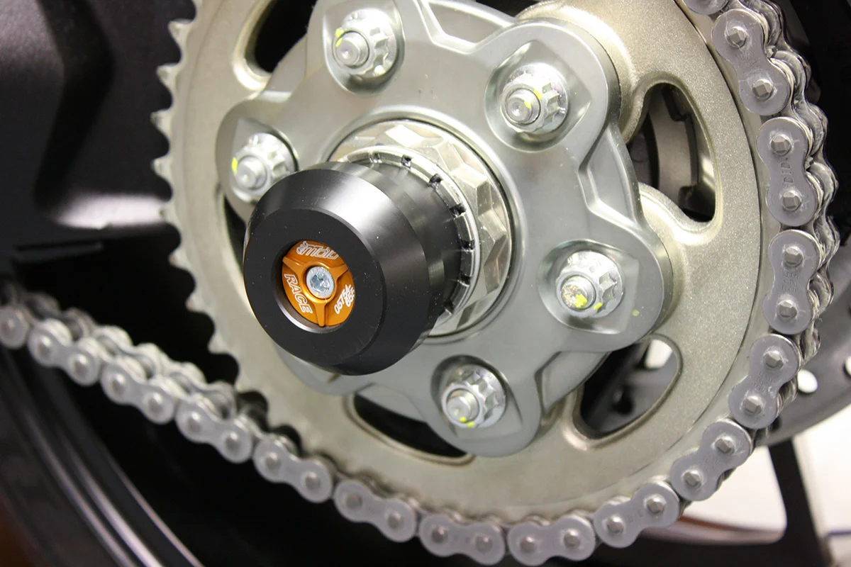 Защитные слайдеры заднего колеса GSG надежно защищают заднюю часть мотоцикла от ударов и протирания. При падении мотоцикл ложится на них и контролируемо скользит до остановки. Форма головки просчитана таким образом, чтобы не зацепиться за неровности асфальта, не повредить место крепления и не перевернуть мотоцикл. Качество слайдеров GSG подтверждено 30-летним производством и использованием на дороге и на гоночных треках. Крепёж входит в комплект.
