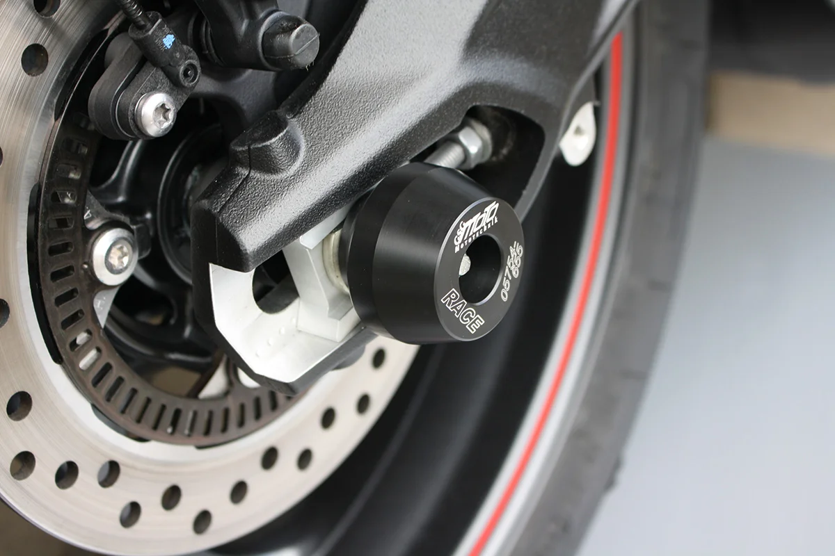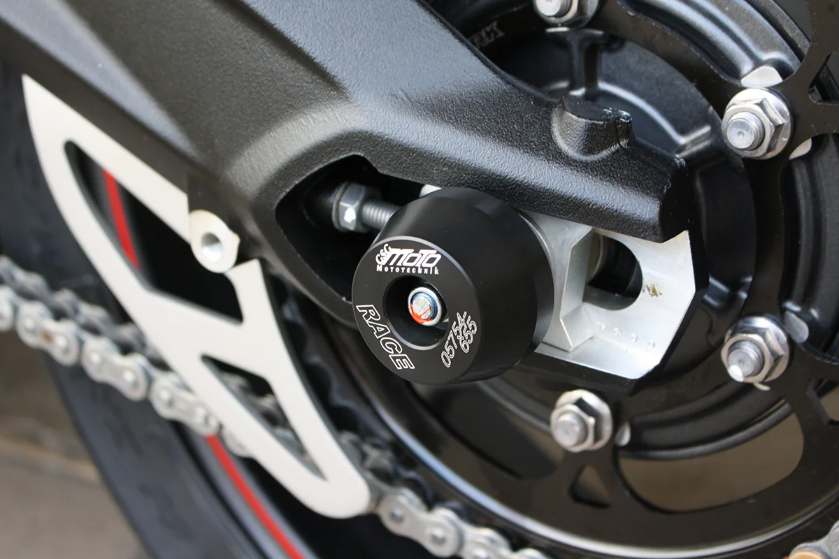 Защитные слайдеры заднего колеса GSG надежно предохраняют заднюю часть мотоцикла от ударов и протирания. При падении мотоцикл ложится на них и контролируемо скользит до остановки. Форма головки просчитана таким образом, чтобы не зацепиться за неровности асфальта, не повредить место крепления и не перевернуть мотоцикл. Качество слайдеров GSG подтверждено 30-летним производством и использованием на дороге и на гоночных треках. Слайдеры устанавливаются в ось заднего колеса с помощью шпильки. Крепёж входит в комплект.