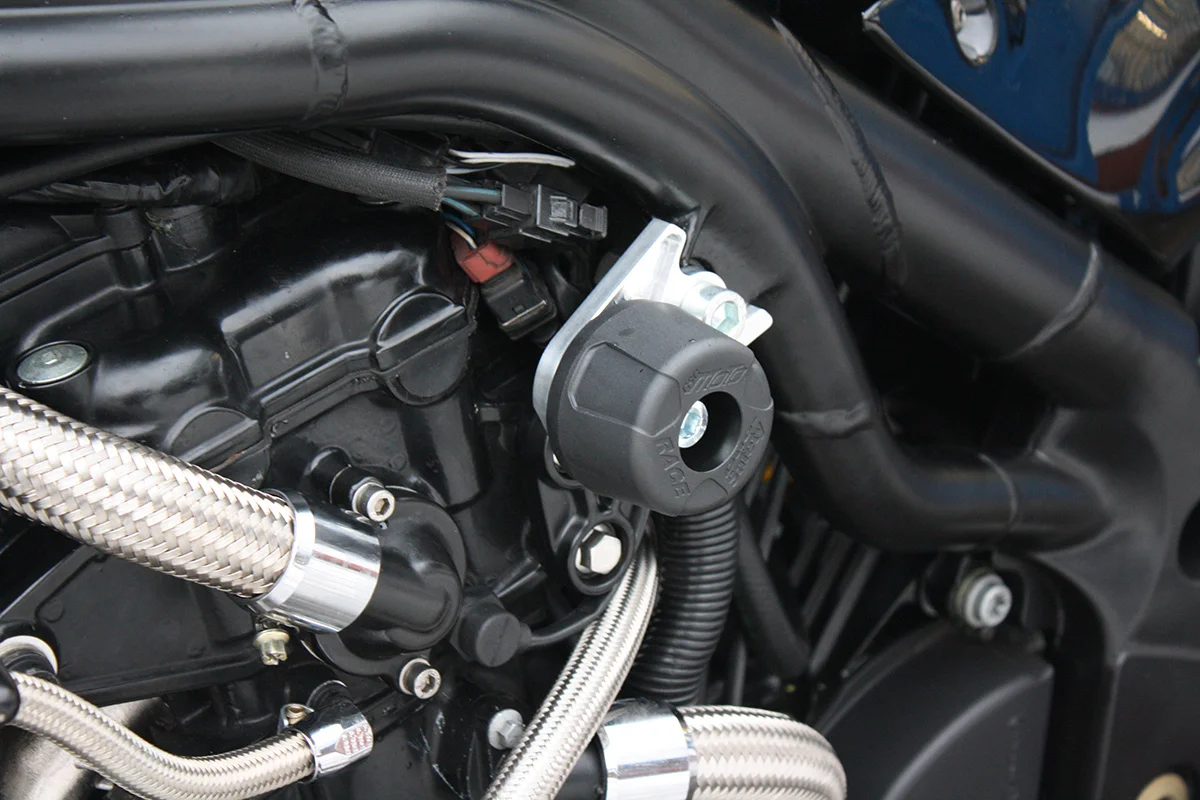 Цилиндрические слайдеры - традиционная деталь для защиты рамы, а также деталей средней и передней частей мотоцикла. В случае падения мотоцикла слайдеры из очень прочного пластика предохраняют от проламывания, протирания и других воздействий. Их качество подтверждено 30-летним производством и использованием на дороге и на гоночных треках. При некоторых видах повреждений цилиндрическую головку можно заменить и продолжить использование слайдера. Слайдер устанавливается на мощный болт и крепится к мотоциклу через систему кронштейнов (входят в комплект).