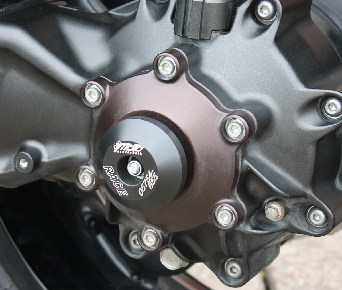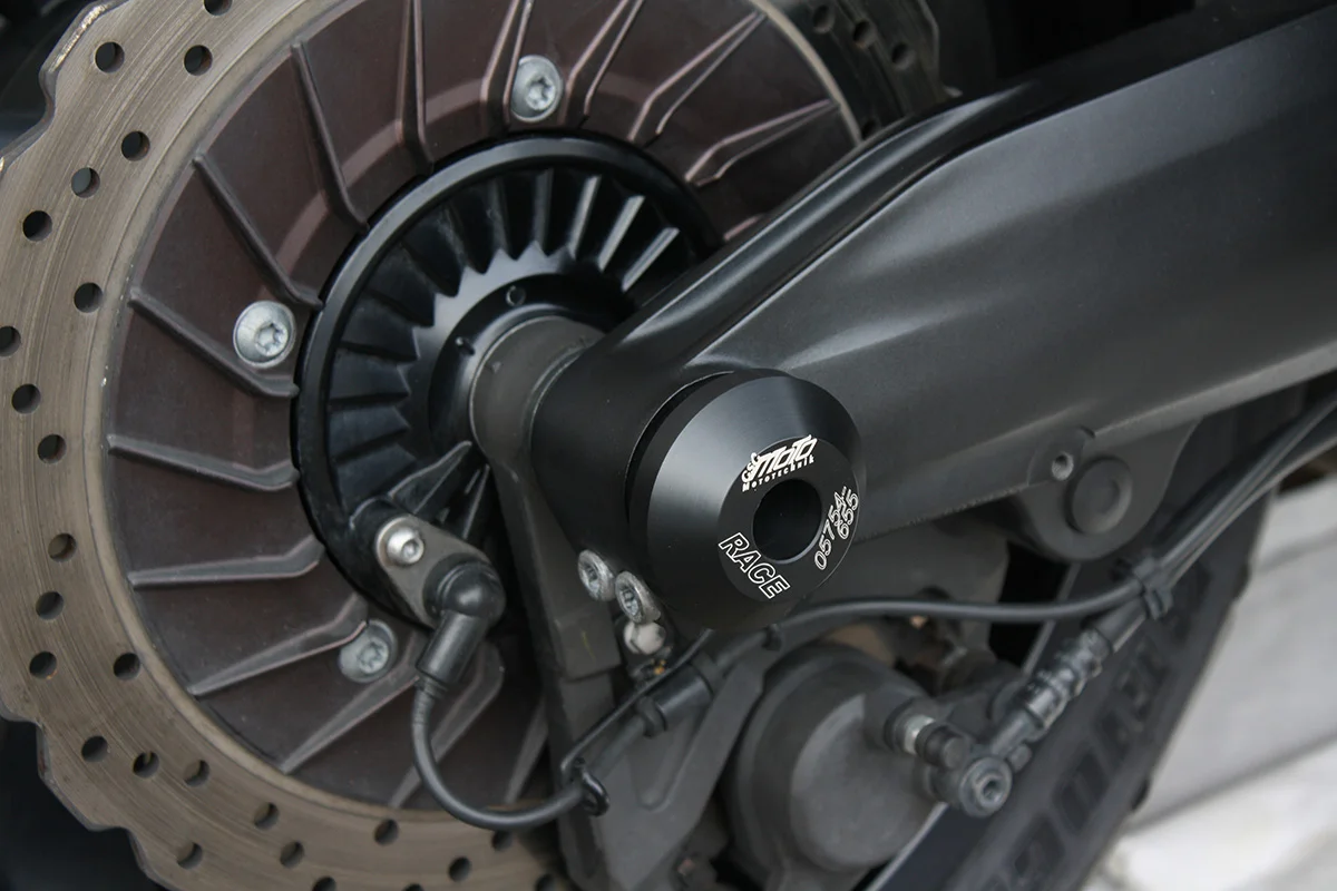 Защитные слайдеры заднего колеса GSG надежно предохраняют заднюю часть мотоцикла от ударов и протирания. При падении мотоцикл ложится на них и контролируемо скользит до остановки. Форма головки просчитана таким образом, чтобы не зацепиться за неровности асфальта, не повредить место крепления и не перевернуть мотоцикл. Качество слайдеров GSG подтверждено 30-летним производством и использованием на дороге и на гоночных треках. Слайдеры устанавливаются в ось заднего колеса с помощью шпильки. Крепёж входит в комплект.