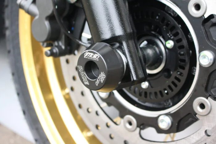 Защитные слайдеры переднего колеса GSG надежно предохраняют переднюю часть мотоцикла от ударов и протирания. При падении мотоцикл ложится на них и контролируемо скользит до остановки. Форма головки просчитана таким образом, чтобы не зацепиться за неровности асфальта, не повредить место крепления и не перевернуть мотоцикл. Качество слайдеров GSG подтверждено 30-летним производством и использованием на дороге и на гоночных треках. Слайдеры устанавливаются на полую ось переднего колеса с помощью шпильки. Крепёж входит в комплект.