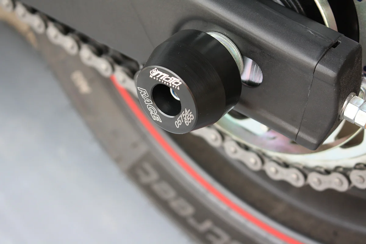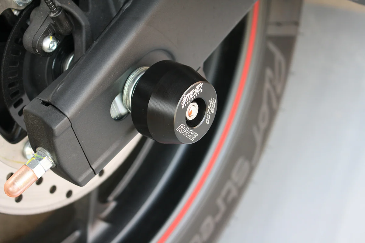 Защитные слайдеры заднего колеса GSG надежно предохраняют заднюю часть мотоцикла от ударов и протирания. При падении мотоцикл ложится на них и контролируемо скользит до остановки. Форма головки просчитана таким образом, чтобы не зацепиться за неровности асфальта, не повредить место крепления и не перевернуть мотоцикл. Качество слайдеров GSG подтверждено 30-летним производством и использованием на дороге и на гоночных треках. Слайдеры устанавливаются в ось заднего колеса с помощью шпильки. Крепёж входит в комплект.