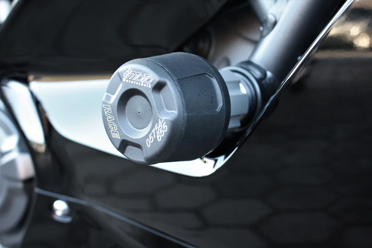 Цилиндрические слайдеры - традиционная деталь для защиты рамы, а также деталей средней и передней частей мотоцикла. В случае падения мотоцикла слайдеры из очень прочного пластика предохраняют от проламывания, протирания и других воздействий. Их качество подтверждено 30-летним производством и использованием на дороге и на гоночных треках. При некоторых видах повреждений цилиндрическую головку можно заменить и продолжить использование слайдера. Слайдер устанавливается на мощный болт и крепится к мотоциклу через систему кронштейнов (входят в комплект).