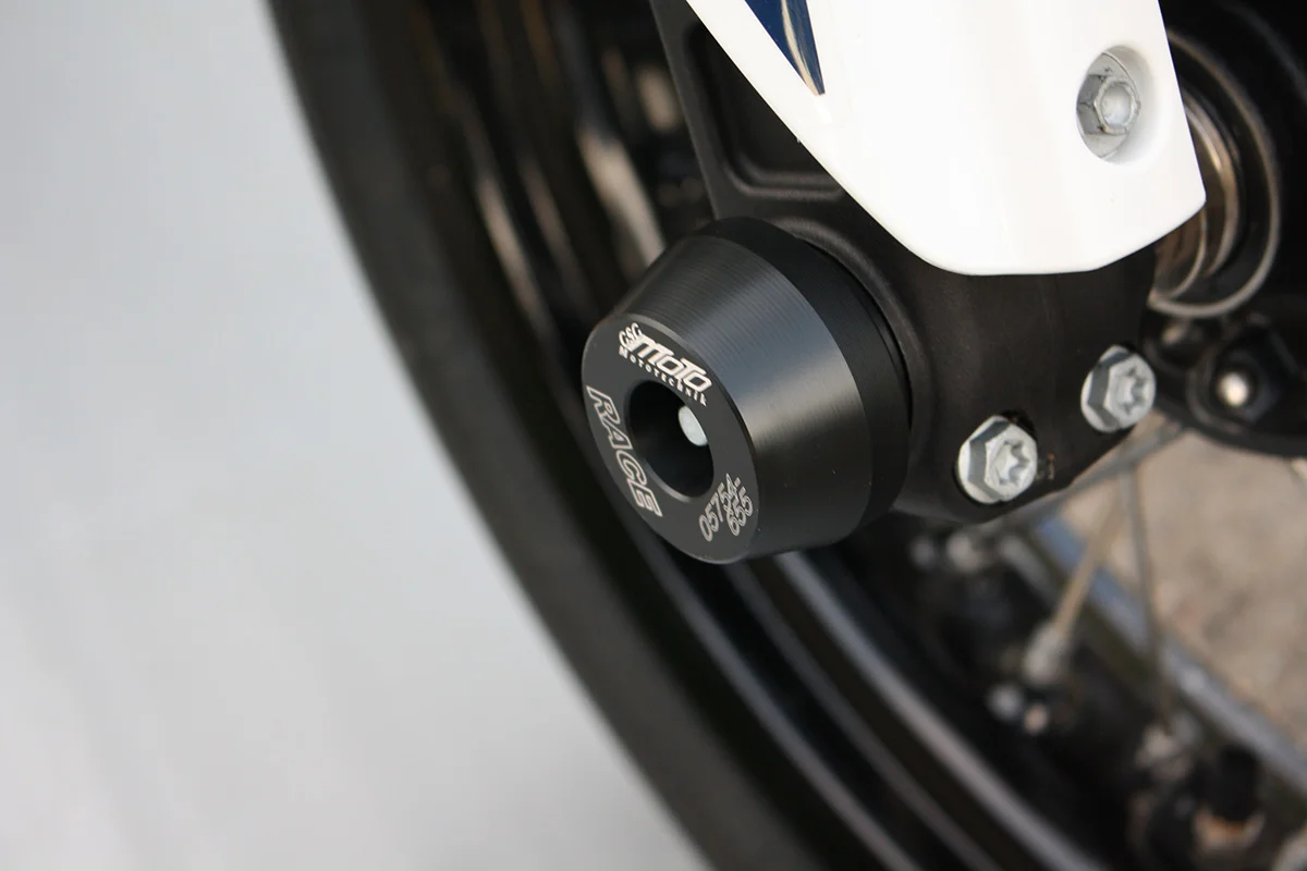Защитные слайдеры переднего колеса GSG надежно предохраняют переднюю часть мотоцикла от ударов и протирания. При падении мотоцикл ложится на них и контролируемо скользит до остановки. Форма головки просчитана таким образом, чтобы не зацепиться за неровности асфальта, не повредить место крепления и не перевернуть мотоцикл. Качество слайдеров GSG подтверждено 30-летним производством и использованием на дороге и на гоночных треках. Слайдеры устанавливаются на полую ось переднего колеса с помощью шпильки. Крепёж входит в комплект.
